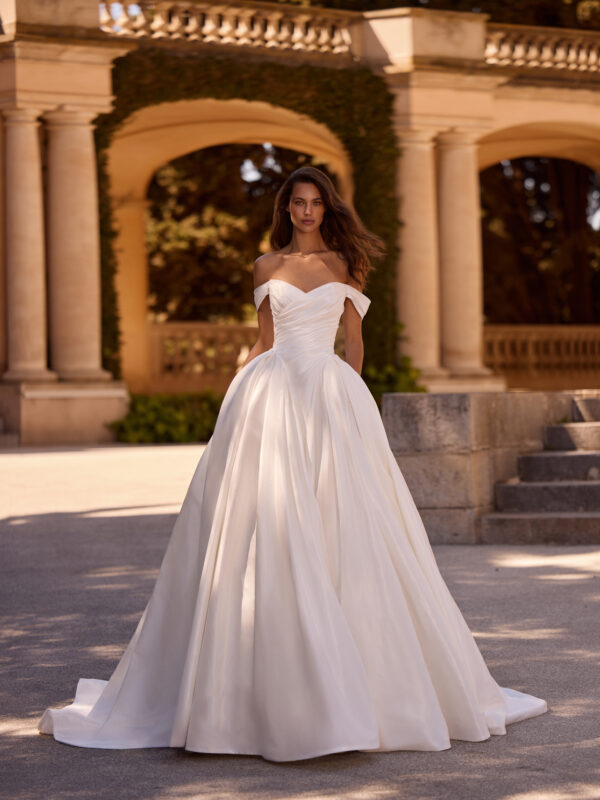 Πριγκιπικό νυφικό φτιαγμένο με απόλυτα αριστοκρατική δαντέλα rebrodé που συνδυάζει μπούστο κορσέ και φούστα με extra όγκο και πιέτες.